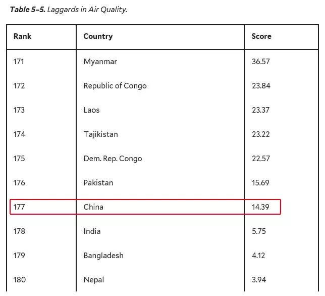 有前十就一定会有倒数...很不幸,在倒数榜单上我们看到了大天朝的身影。