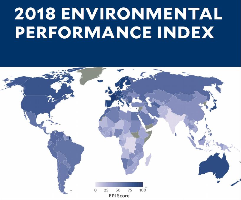 年4月份,美国耶鲁大学和哥伦比亚大学联合发表了2018年全球环境绩效指数EPI(EnvironmentalPerformance Index)
