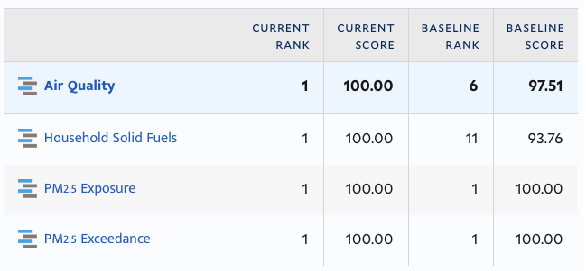 环境健康评选综合了空气质量、水质量、卫生管理以及重金属残留等指标。
