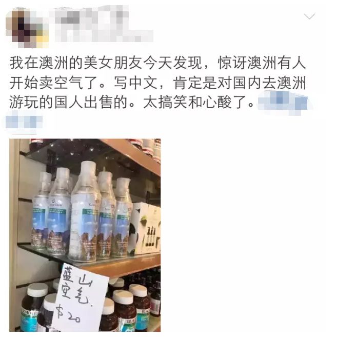 因为澳洲空气质量奇高,很多商家看到了其中的牟利点,于是乎有人看到了这样一款比较“特殊”的产品。